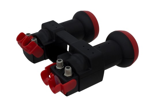 Διπλό Monoblock LNB με ρυθμιζόμενες μοίρες απόκλισης 0-37 mm (με δύο εξόδους για δύο δέκτες), 0.1db. Περιλαμβάνει 4 καλώδια και 2 DiSEqC 2-1.